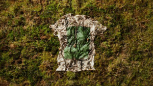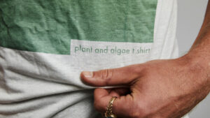Ce t-shirt est conçu à partir d’eucalyptus réduit en pâte, de hêtres provenant de forêts gérées de manière durable et d’algues cultivées dans des bioréacteurs. La couleur blanc cassé évoque la couleur des fibres produites à partir de pulpes d’arbre. Vollebak a fait appel aux «pionniers berlinois des algues Essi Johanna Glomb et Rasa Weber, pour transformer les algues en une encre imprimable. Ces derniers ont recréé une technique utilisée au Kenya pour créer un gâteau aux algues. (Vollebak)» Pour conserver la couleur issue des pigments d’algues, on recommande de laver le t-shirt à la main à l’eau froide avec peu de détergent, . Ce chandail est entièrement biodégradable et compostable. Vous souhaitez vous en départir en le compostant ou en l’enterrant. Il prend environ 8 semaines à se décomposer, avec le compostage domestique, et autour de 12 semaines si vous l’enfouissez dans le sol.